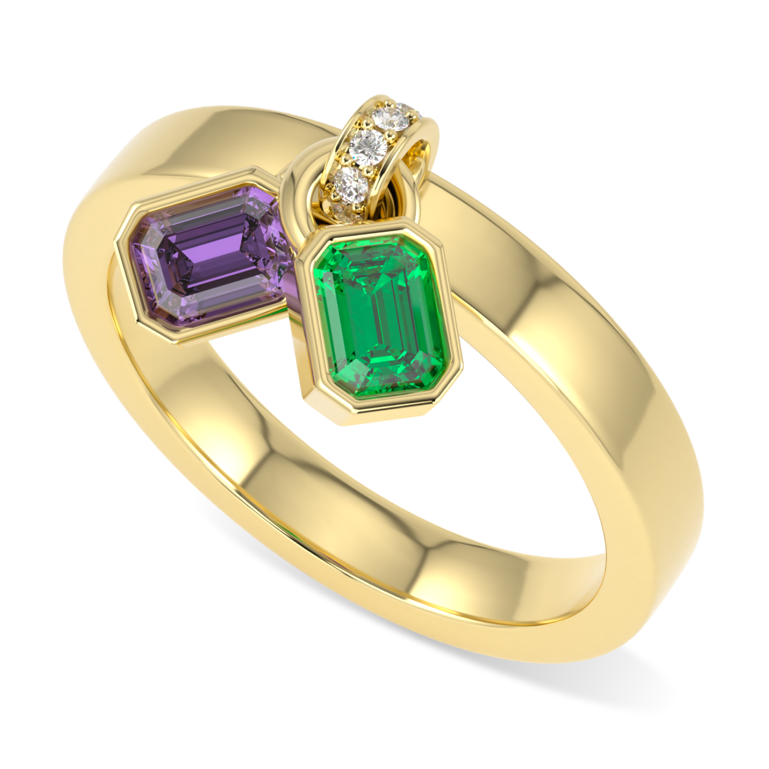 A 2023 collaboration to honour the women of the WAAF and RAF. A limited edition 'Stripes' ring featuring tsavorite, amethyst and diamonds in a unique dynamic fob style stripes design. Once again we shine a light on women's rights.
