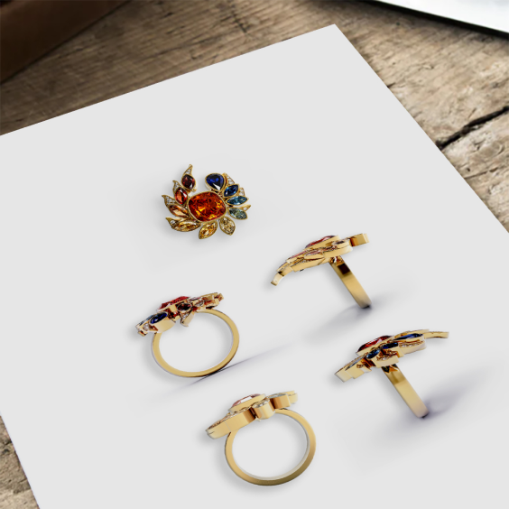 When a client approached us with the words, "I want a statement ring bursting with colour to celebrate my latest promotion in the private bank," we knew we had to rise to the occasion. The challenge was clear: find the perfect starting point to make this commission a fantastic success.