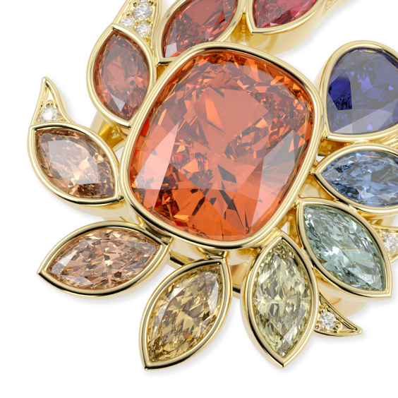 In the end, we turned to our most trusted gemstone supplier, who scoured Thailand to source and cut 9 marquise sapphires, each in a specific pastel hue. From red to blue, each stone was meticulously matched in colour, size, and cut — a feat we couldn't be happier with. As for the rare 8-carat fire opal, we journeyed all the way to Mexico to find the perfect gem.