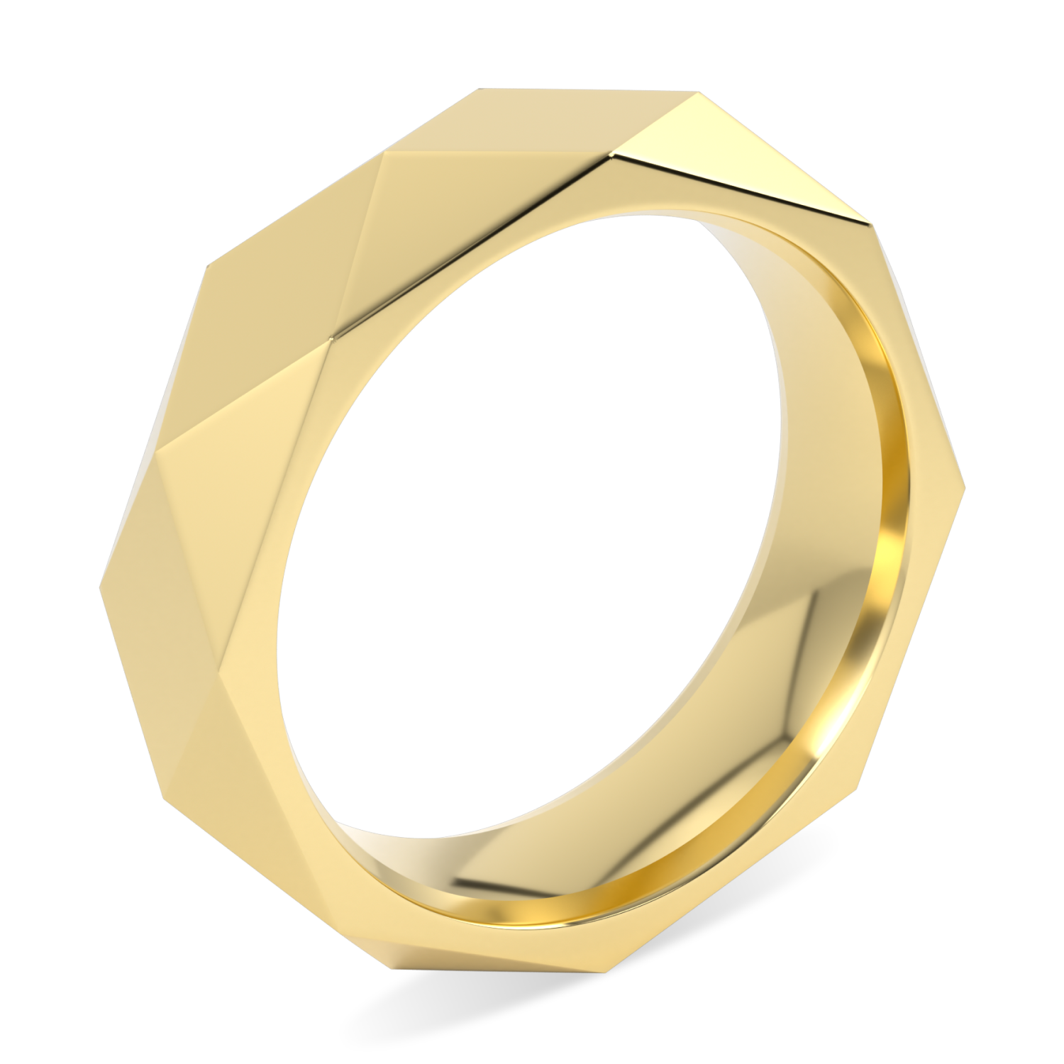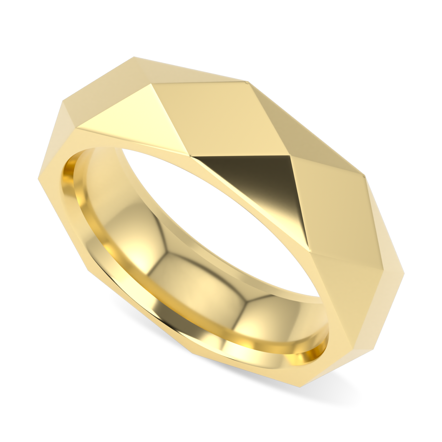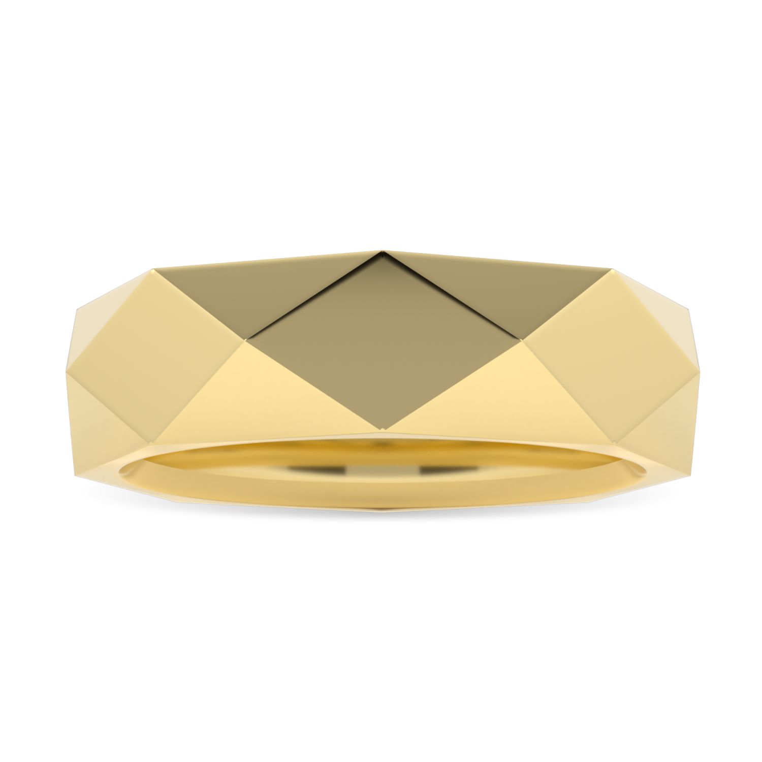 With the central design tenet of this collection centering around the alignment of facets within a flawlessly cut diamond - the faceted 18ct yellow gold ring plays off that ideal. A modern angular faceted ring that hypnotizes with its multiple facets that have been diamond cut, fashioned and polished.
