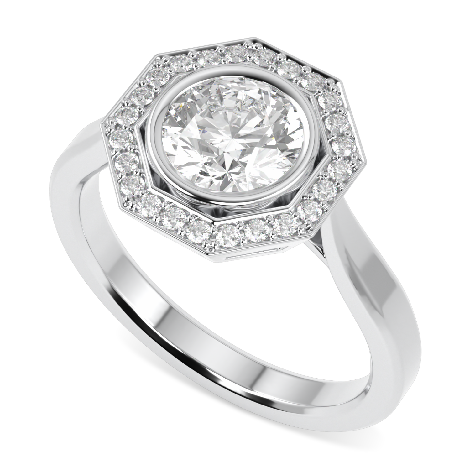 Brilliance 40 Platinum Diamond Octagonal Halo Ring