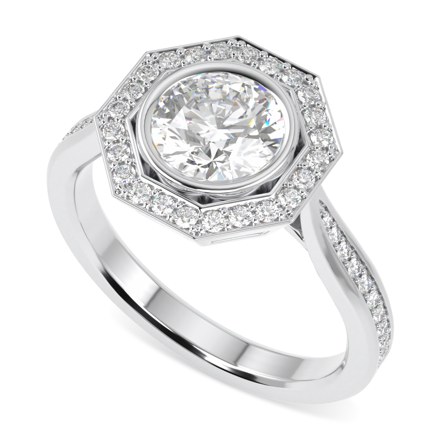 Appointment Booking - Brilliance 40 Platinum Diamond Octagonal Halo (With Shoulder Stones) Ring