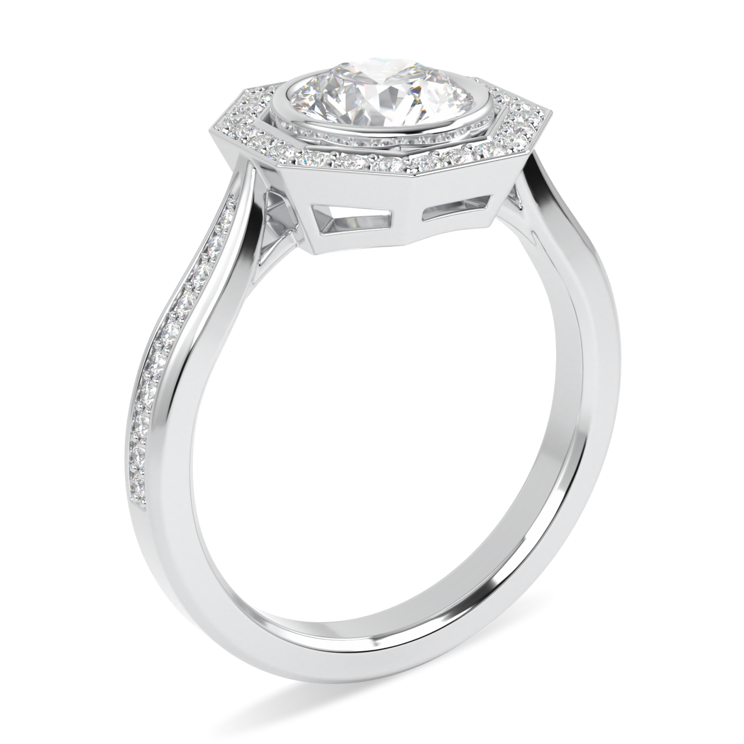Brilliance 40 Platinum Diamond Octagonal Halo (With Shoulder Stones) Ring