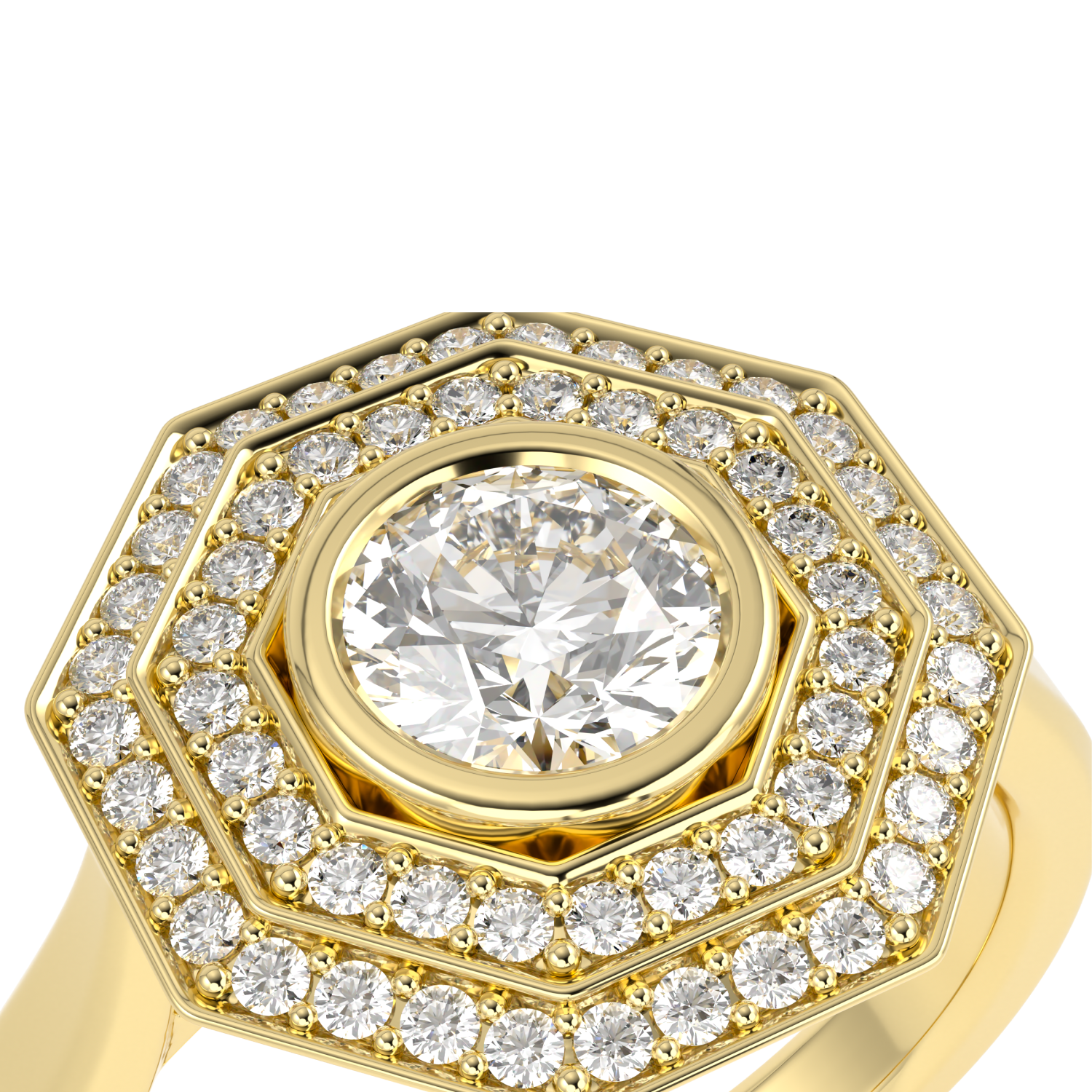 Brilliance 40 Yellow Gold Diamond Double Octagonal Halo Ring