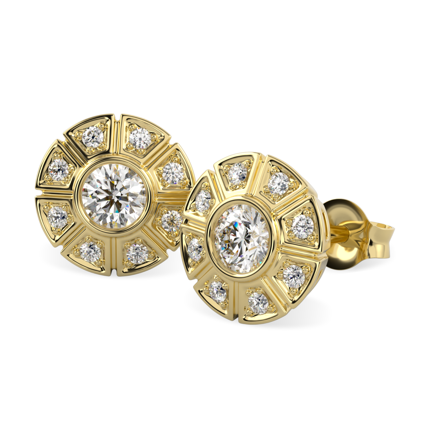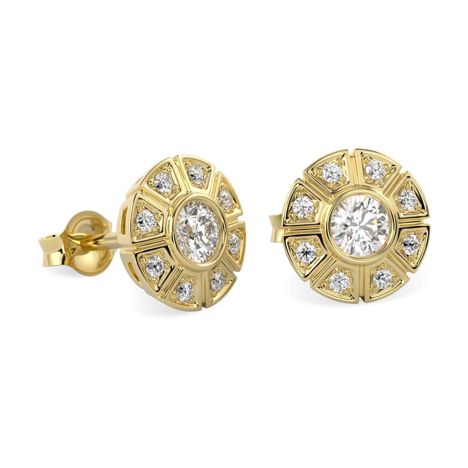 Cipher Yellow Gold Diamond Geometric Halo Earrings