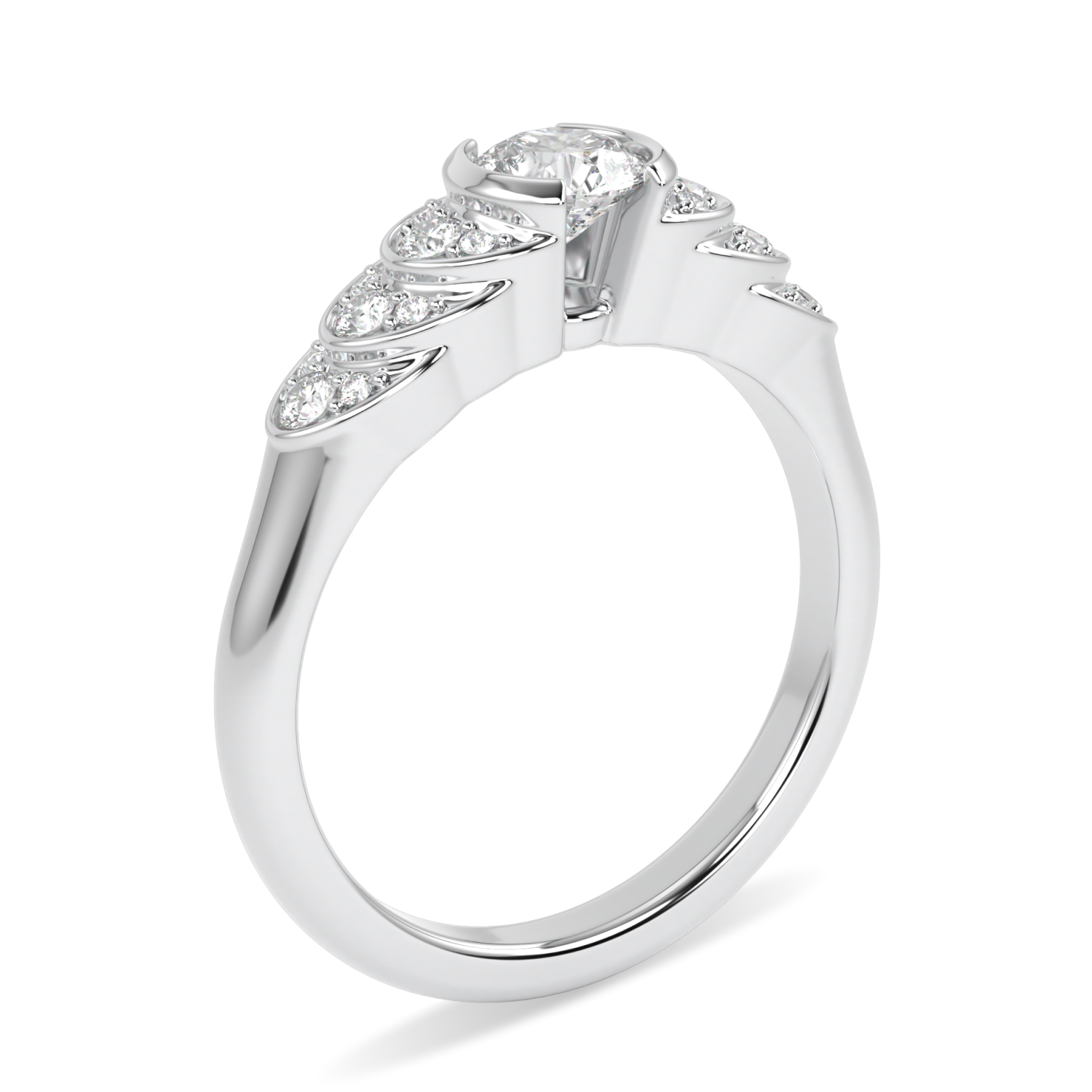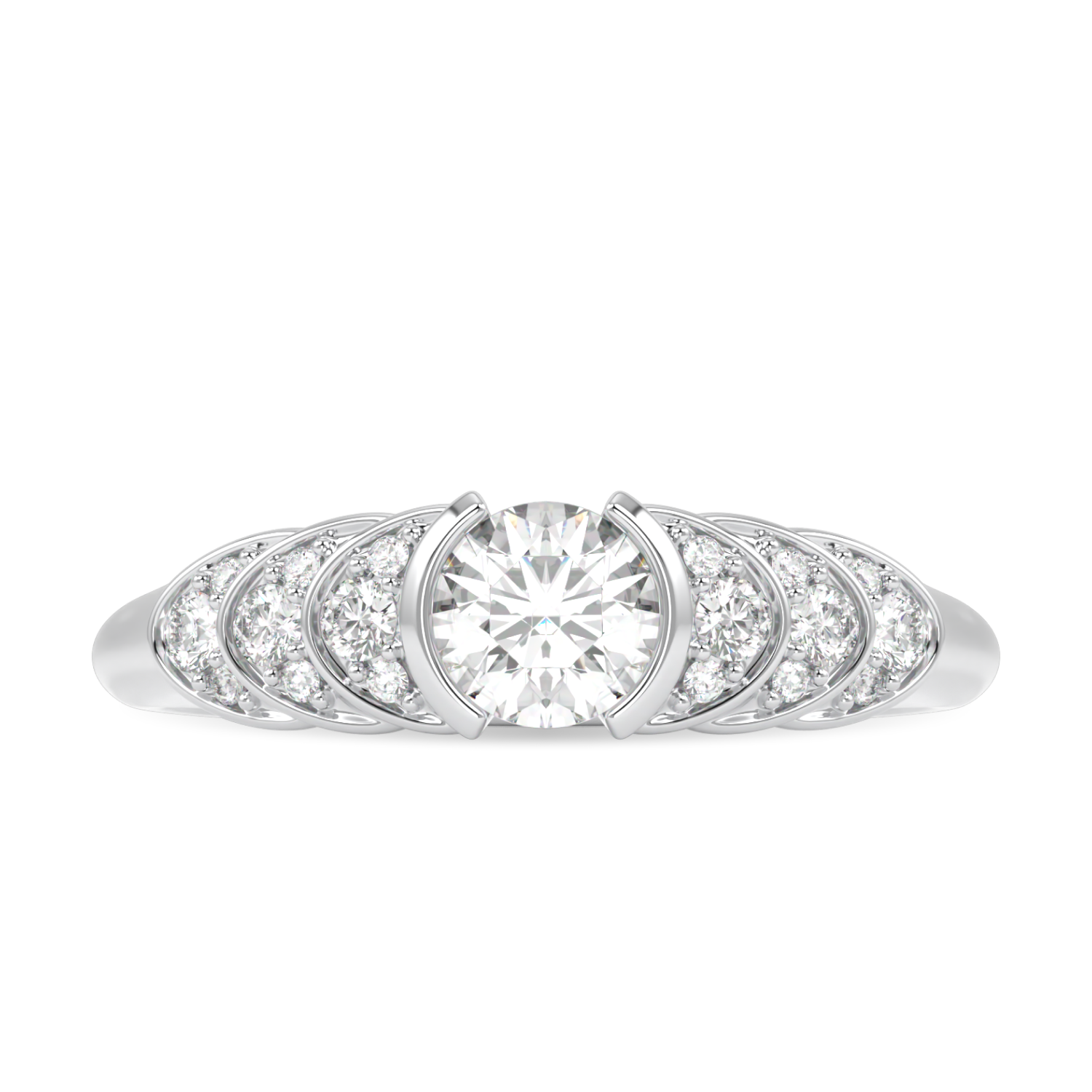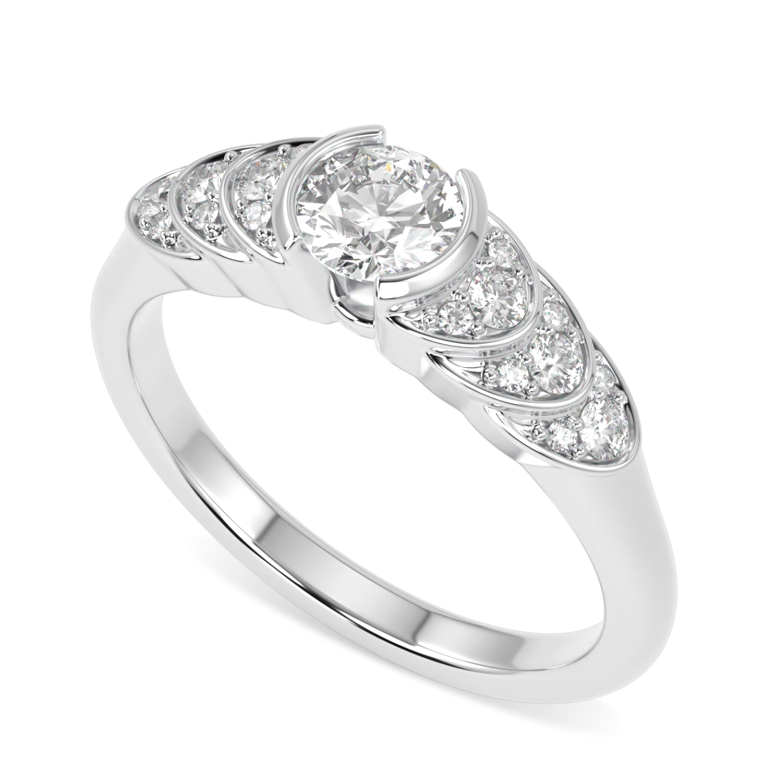 The Cove setting exquisitely encapsulates the essence of nature's splendor. Drawing inspiration from our island heritage, where the sea is an integral part of our identity, this piece mirrors the awe-inspiring coves sculpted by the relentless waves. A 0.30cts round brilliant cut diamond is surrounded by echoing half moons of diamonds on each side of the central stone. Set on a platinum shank