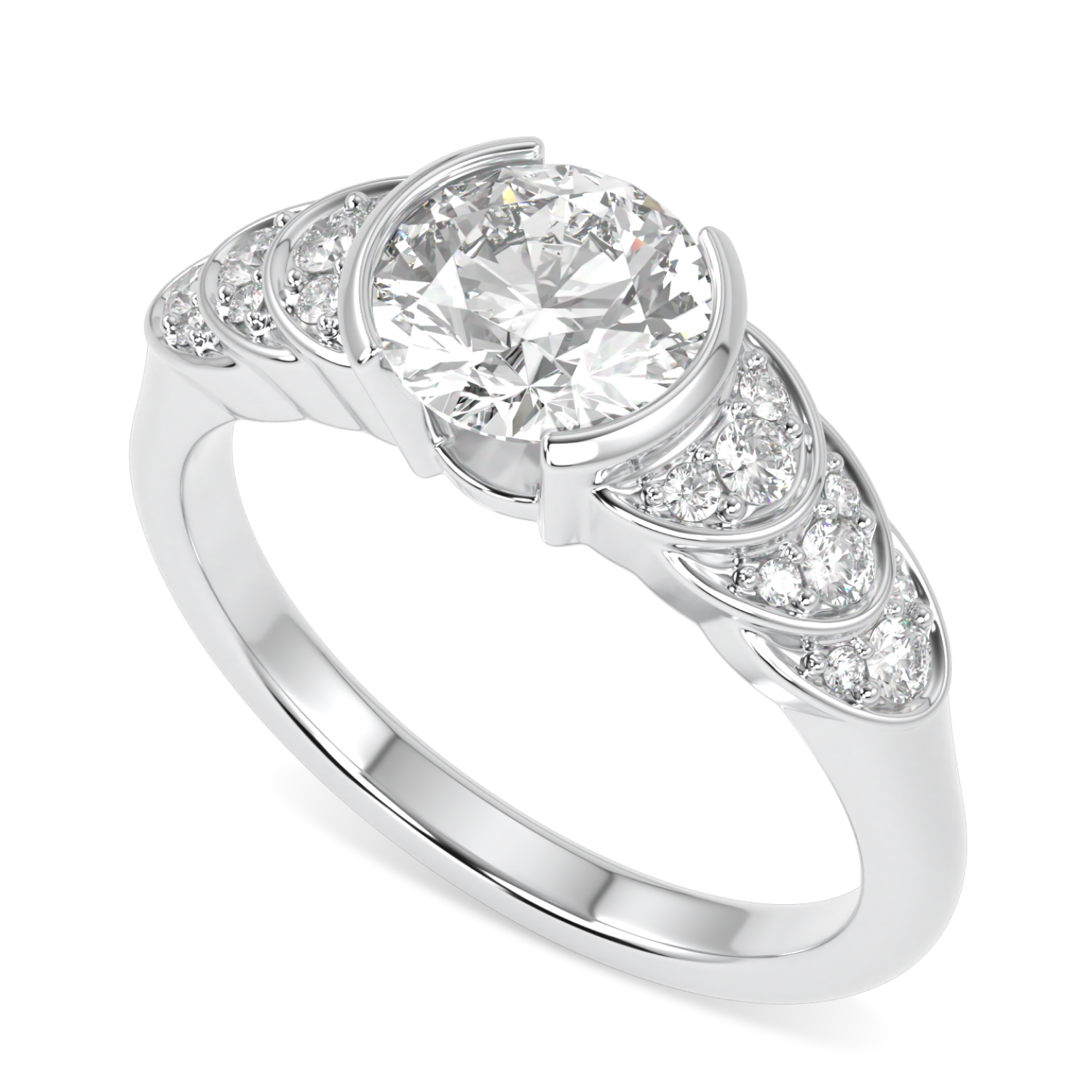 Embracing our island's rich heritage, the Cove setting draws inspiration from the ocean that defines our cultural essence. This exquisite piece beautifully reflects the grandeur of coves shaped over time by the enduring power of the relentless waves. A 1.00ct round brilliant cut diamond is flanked by echoing half moons of diamonds on either side of the central stone. Set on a platinum shank
