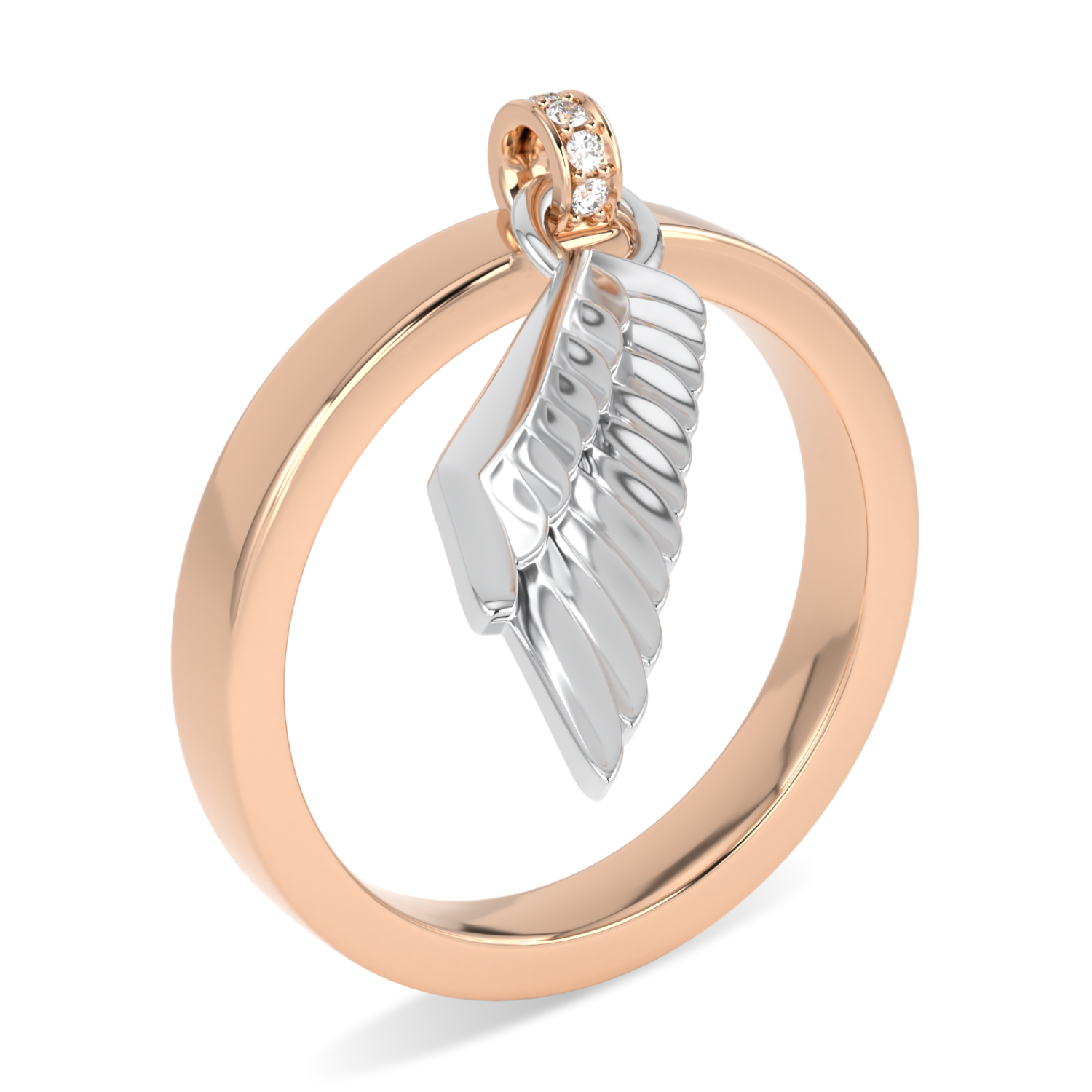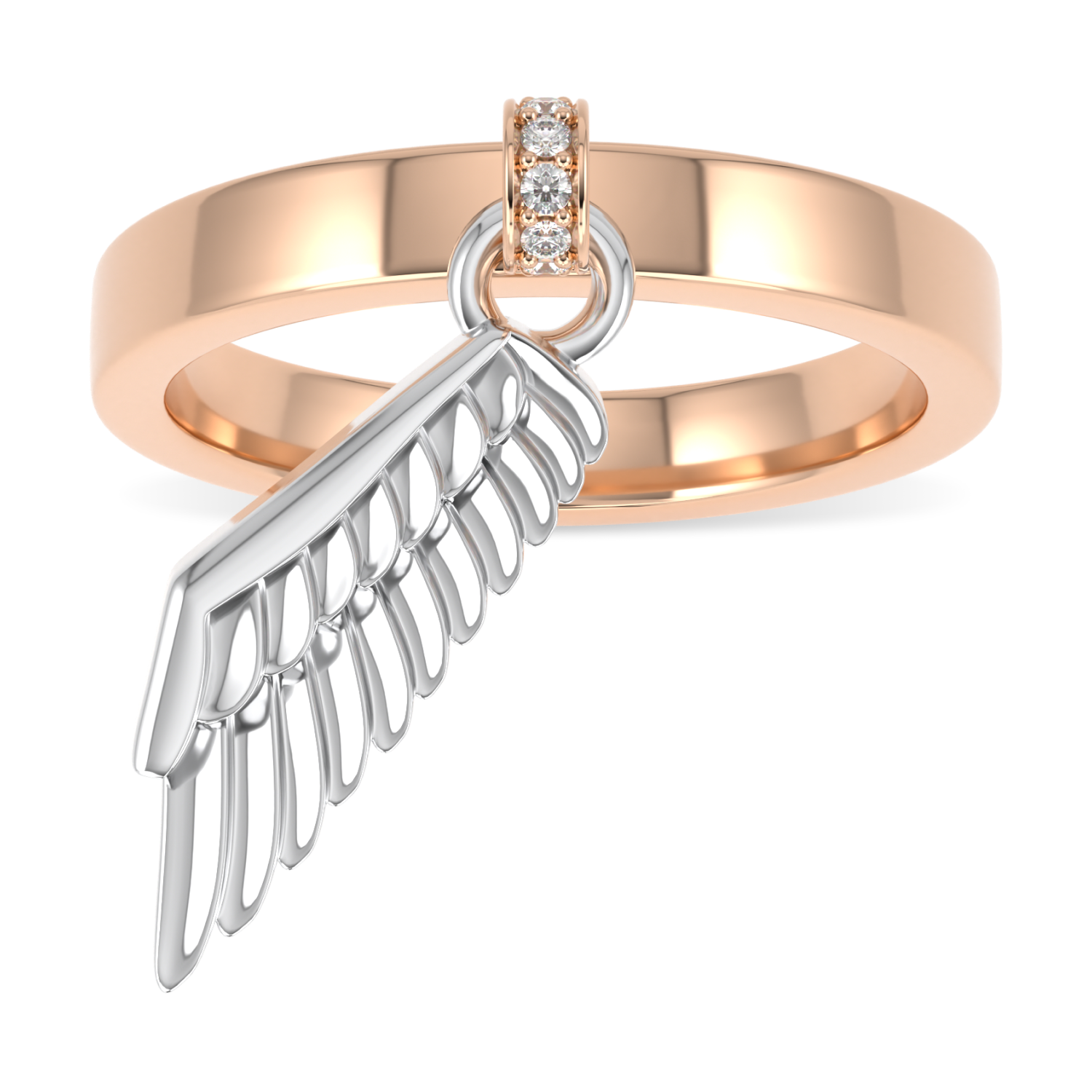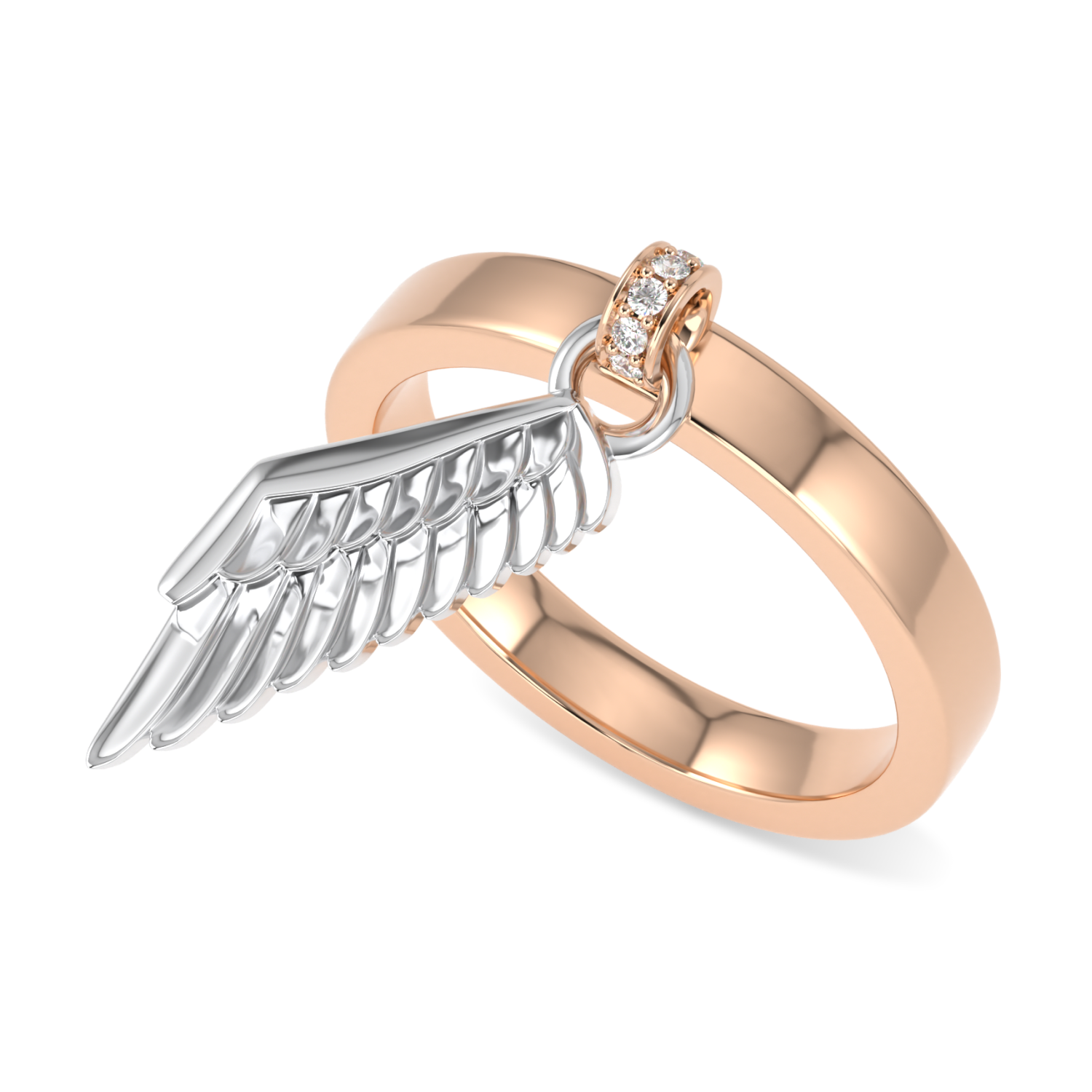 Inspired by the acts of courageous women in the WAAF in WW2 this ring features a diamond milled freedom wing in 18ct white gold set on a diamond loop 18ct rose gold charm ring. A strong symbolic yet elegant ring. Part of the IWD23 Capsule collection.