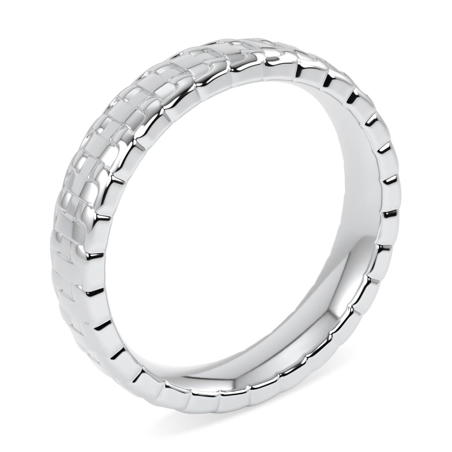 A ring showcasing interconnected segments of chain all in 18ct white gold. Representing the female journey towards empowerment, this ring symbolises the breaking of chains - an elegant yet purposeful statement piece of fine jewellery.