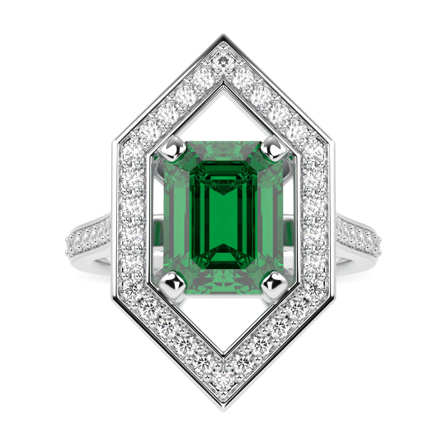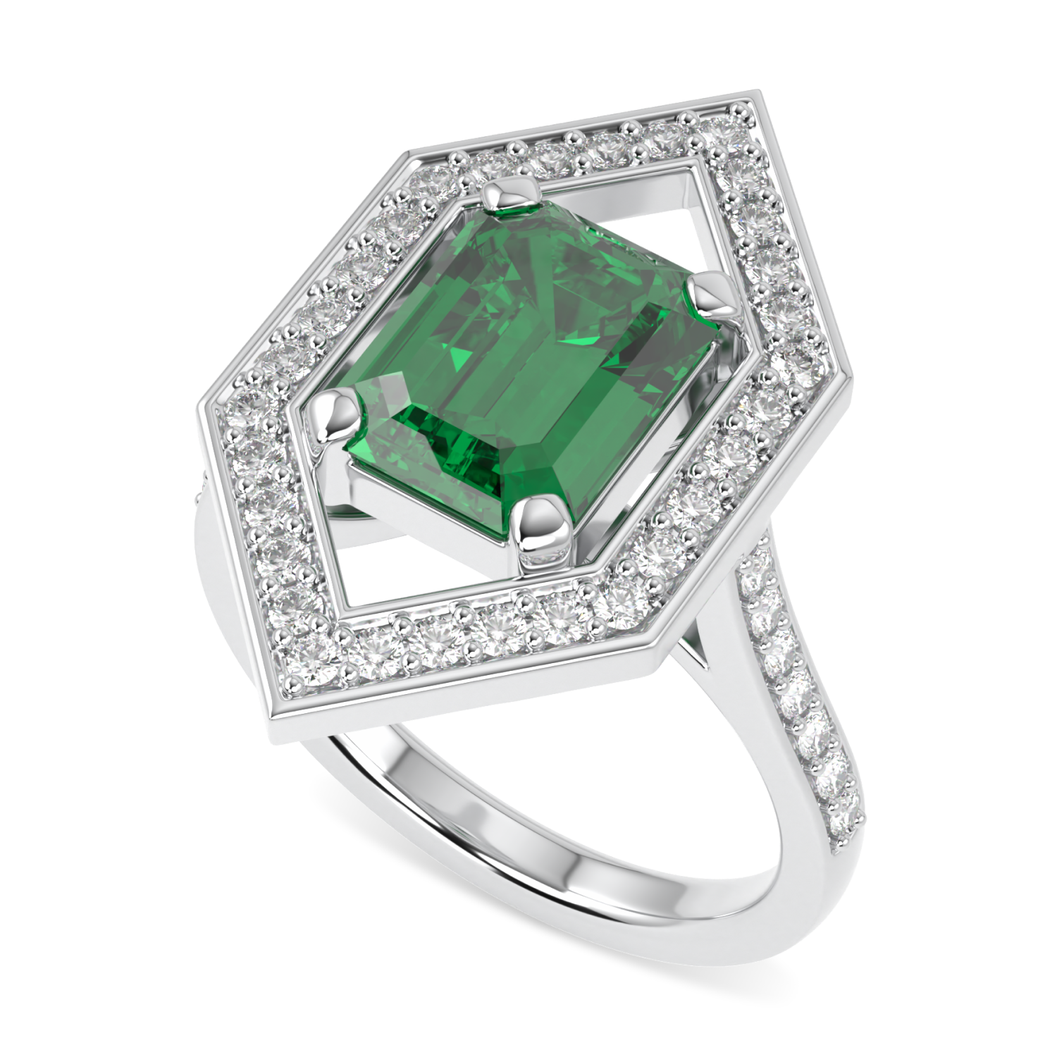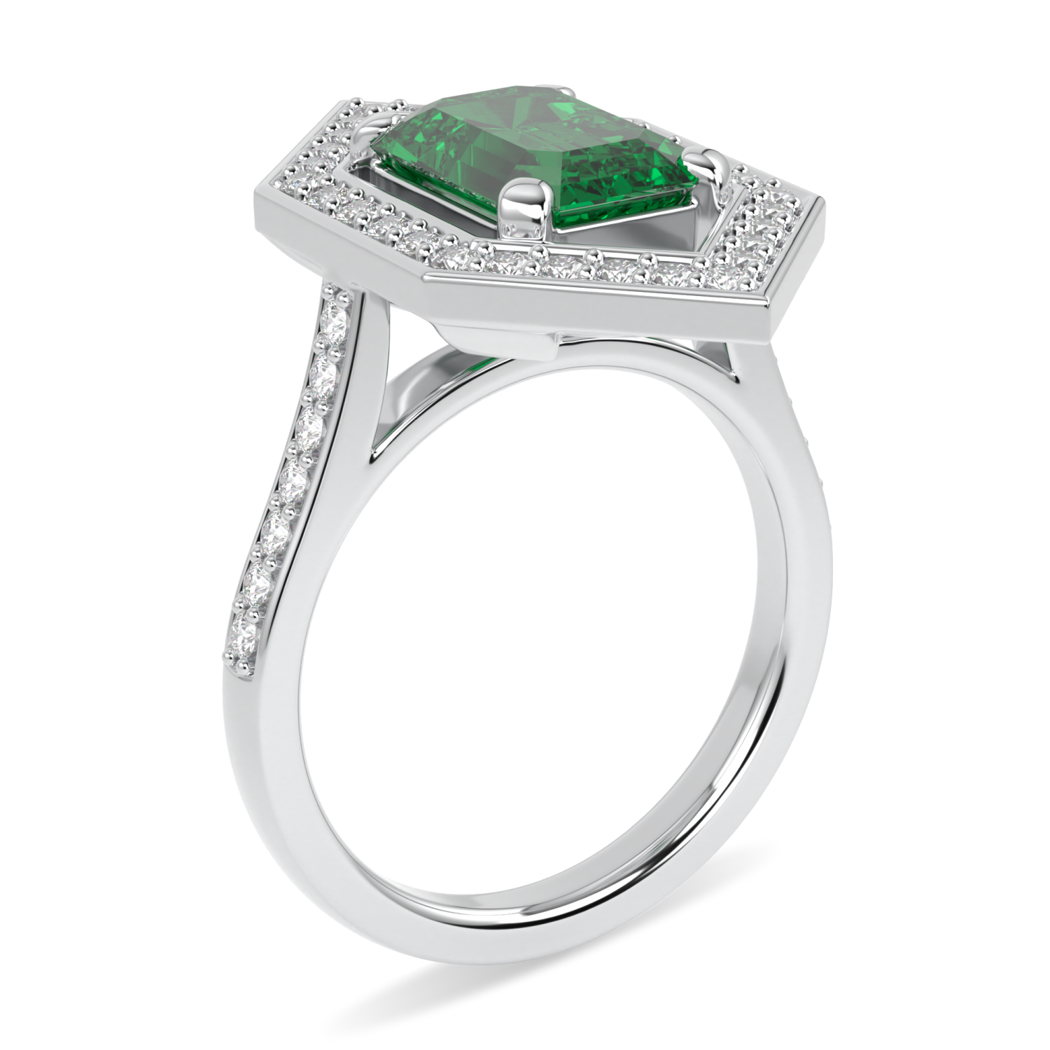 Order by phone - Empress Emerald Diamond Hexagonal Halo Ring