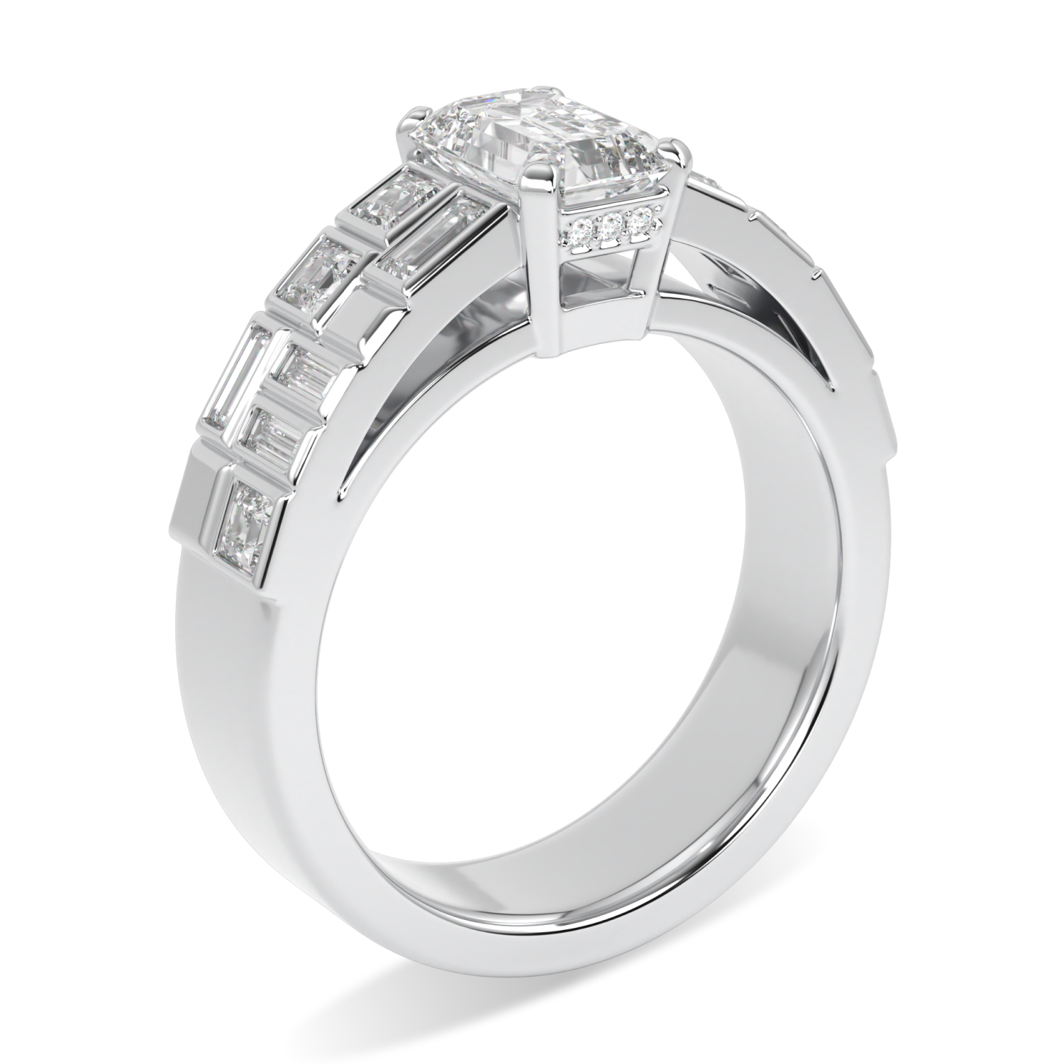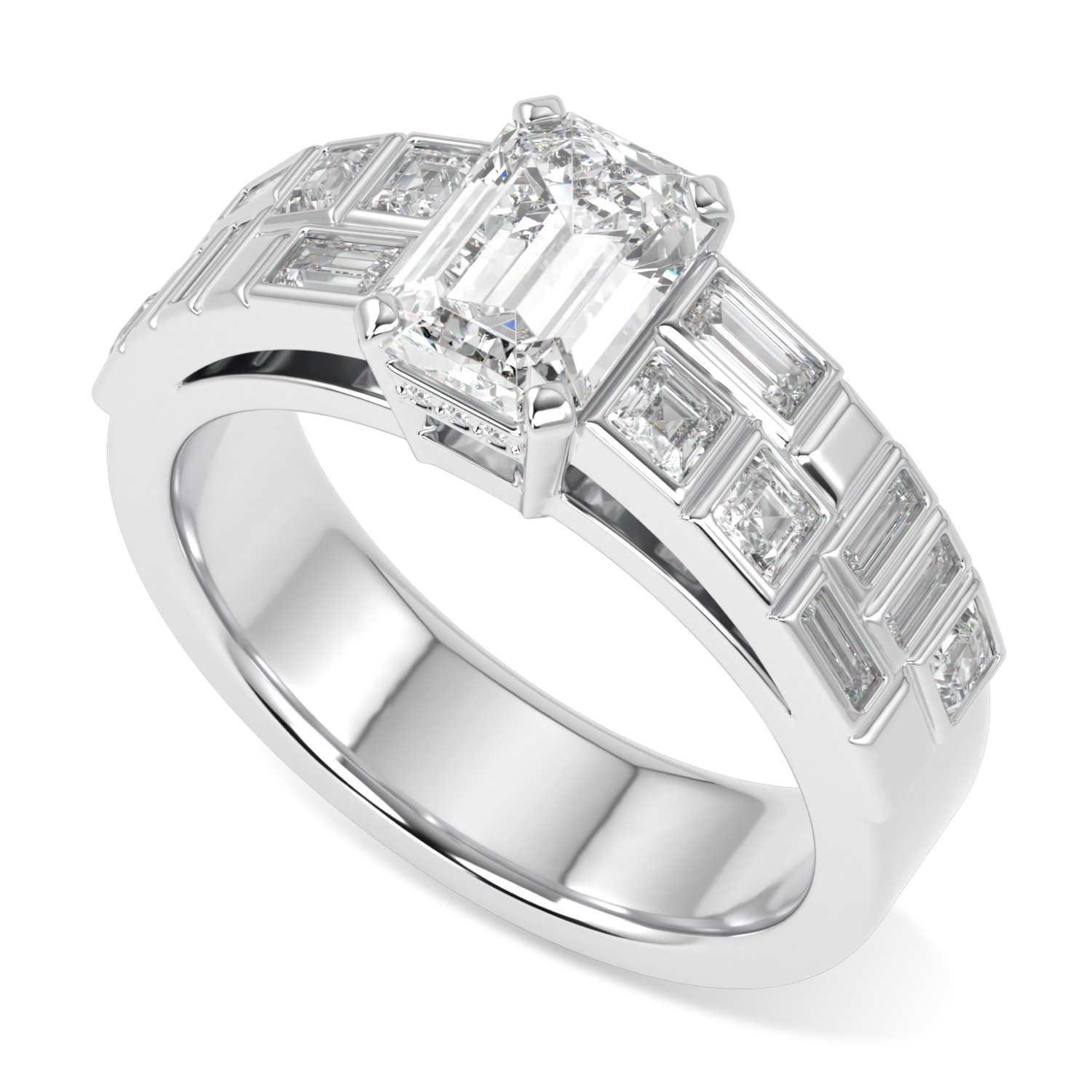 Appointment Booking - Force Platinum Double Row Emerald Cut Diamond Engagement Ring 1.00cts
