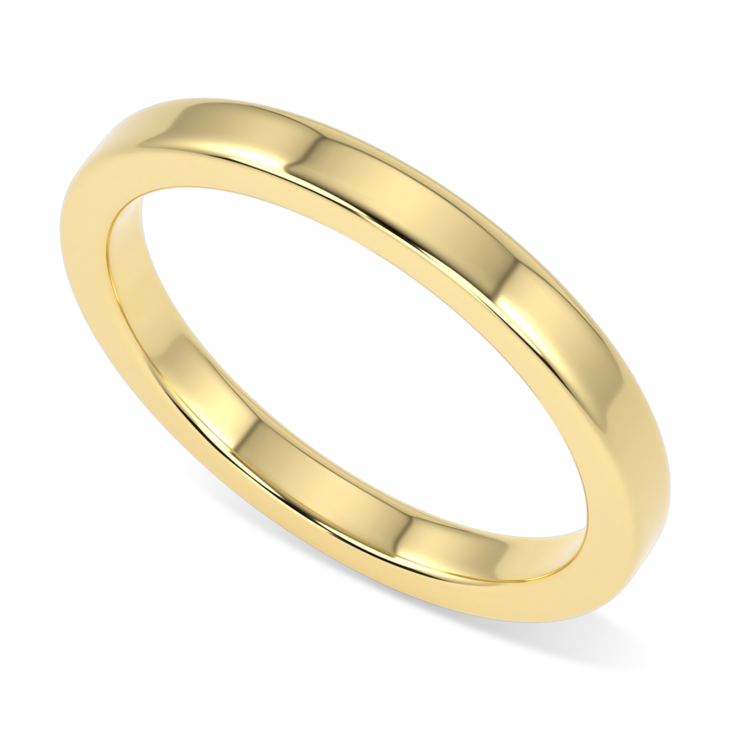 A Flat Court shaped band designed to sit flush against your engagement ring. This 18ct yellow gold band has been designed to elegantly compliment any chosen style or design