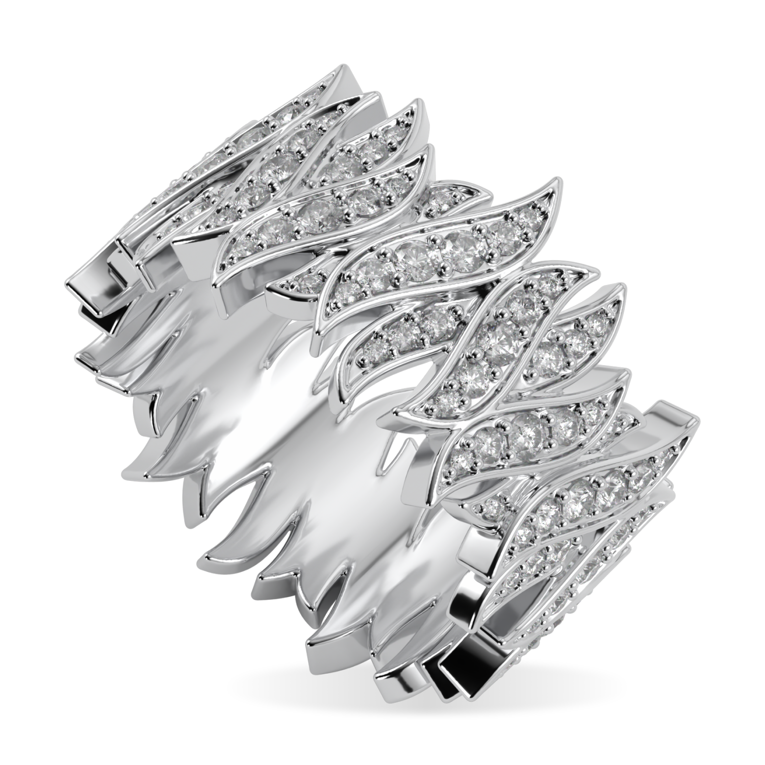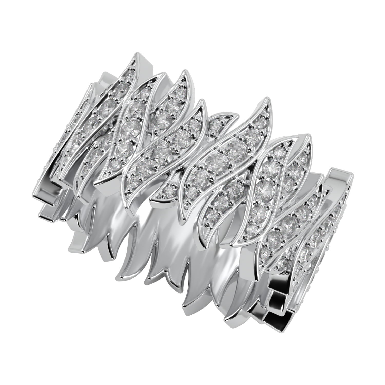 A ring / rondel which is part of the Inferno capsule featuring multiple diamond encrusted flames. The small diamonds used within the ring are D-F in colour and IF-VVS in terms of clarity. This fiery beauty can be worn in a multitude of ways - as a ring or as a rondel on a Blacklock chain - with or alone. This is a one-of-a-kind creation that matches beautifully with the Inferno engagement ring. The diamonds within the setting have a total carat weight of 1.05cts.
