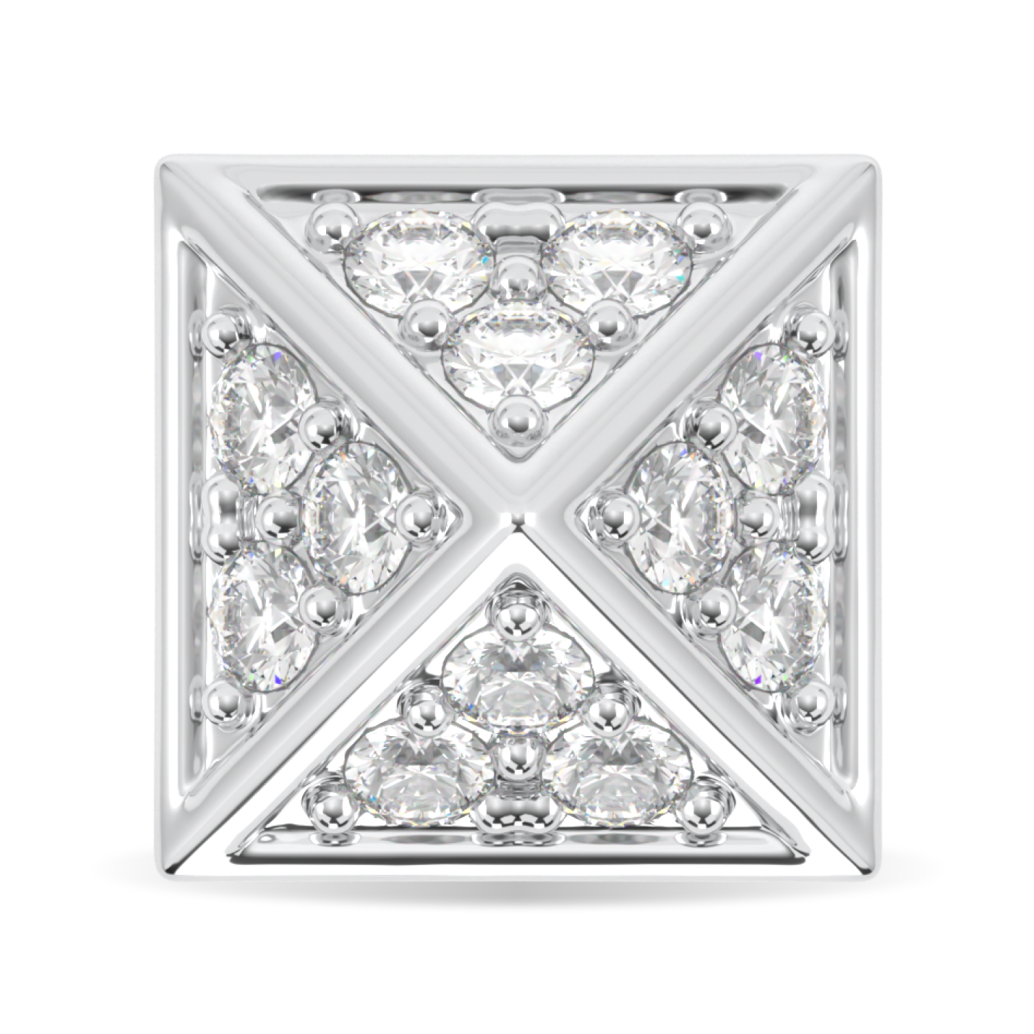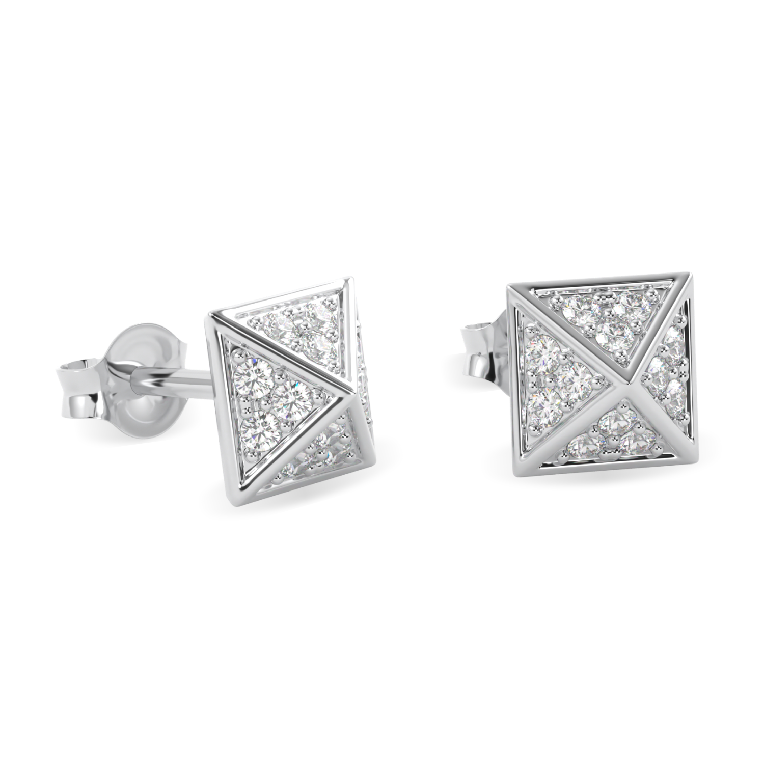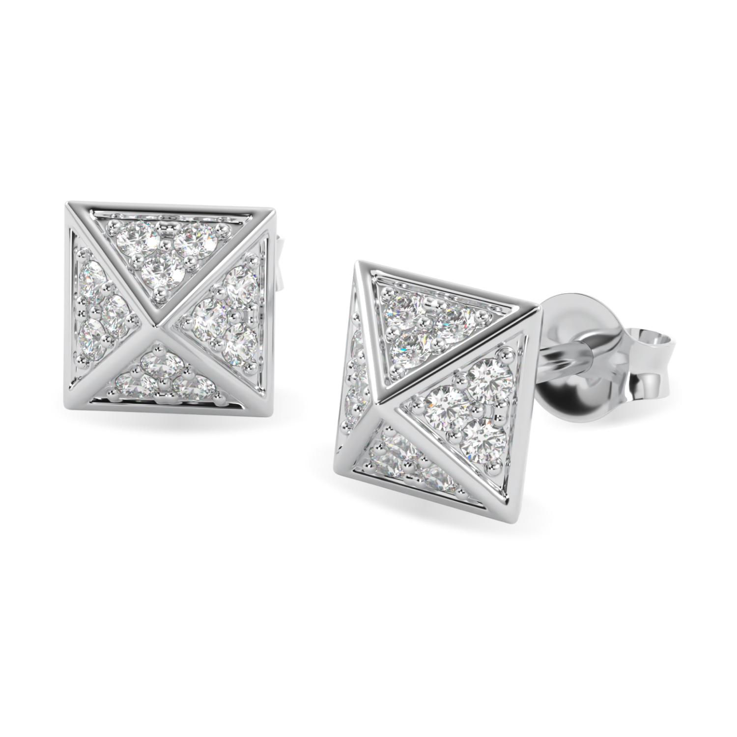 The Origami Earrings embody rays of light, with four triangular segments of grain-set diamonds converging to form a stunning pyramidal shape that emanates radiance and elegance. Total carat weight 0.24cts. Crafted in 18ct white gold