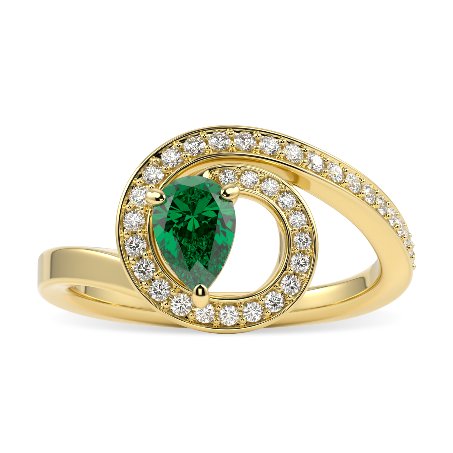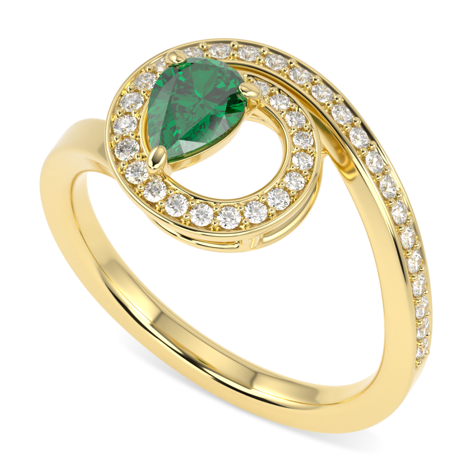 The Serpentine green tourmaline and diamond ring epitomizes the rolling green Capability Brown landscapes, as nature blooms at the height of an English summer, drawing inspiration from it. The ring delights in its simple yet mesmeriszing swirling form, featuring a 0.50cts pear shaped green tourmaline and 0.17cts of round brilliant cut diamonds in 18 carat yellow gold.