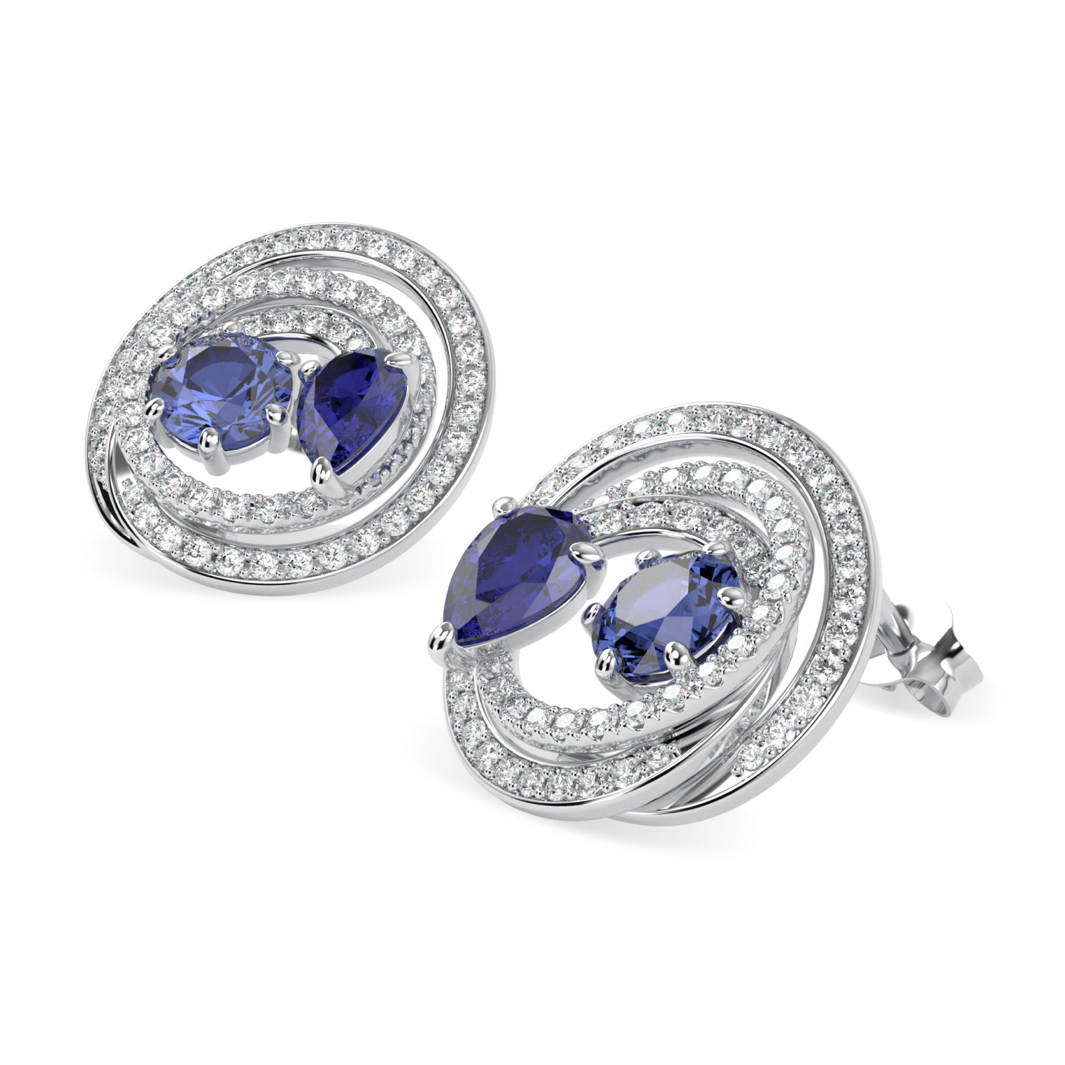 Order by phone - Serpentine White Gold Sapphire Diamond Stud Earrings