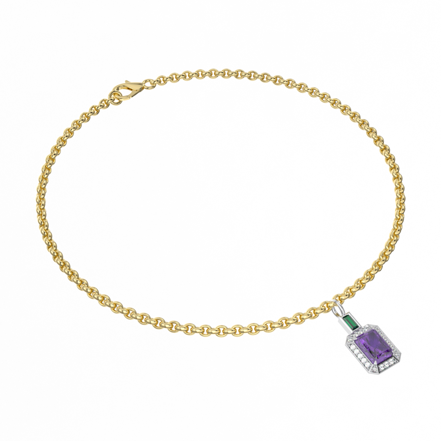 Appointment Booking - Yellow Gold Sufragette Amethyst Halo Charm bracelet