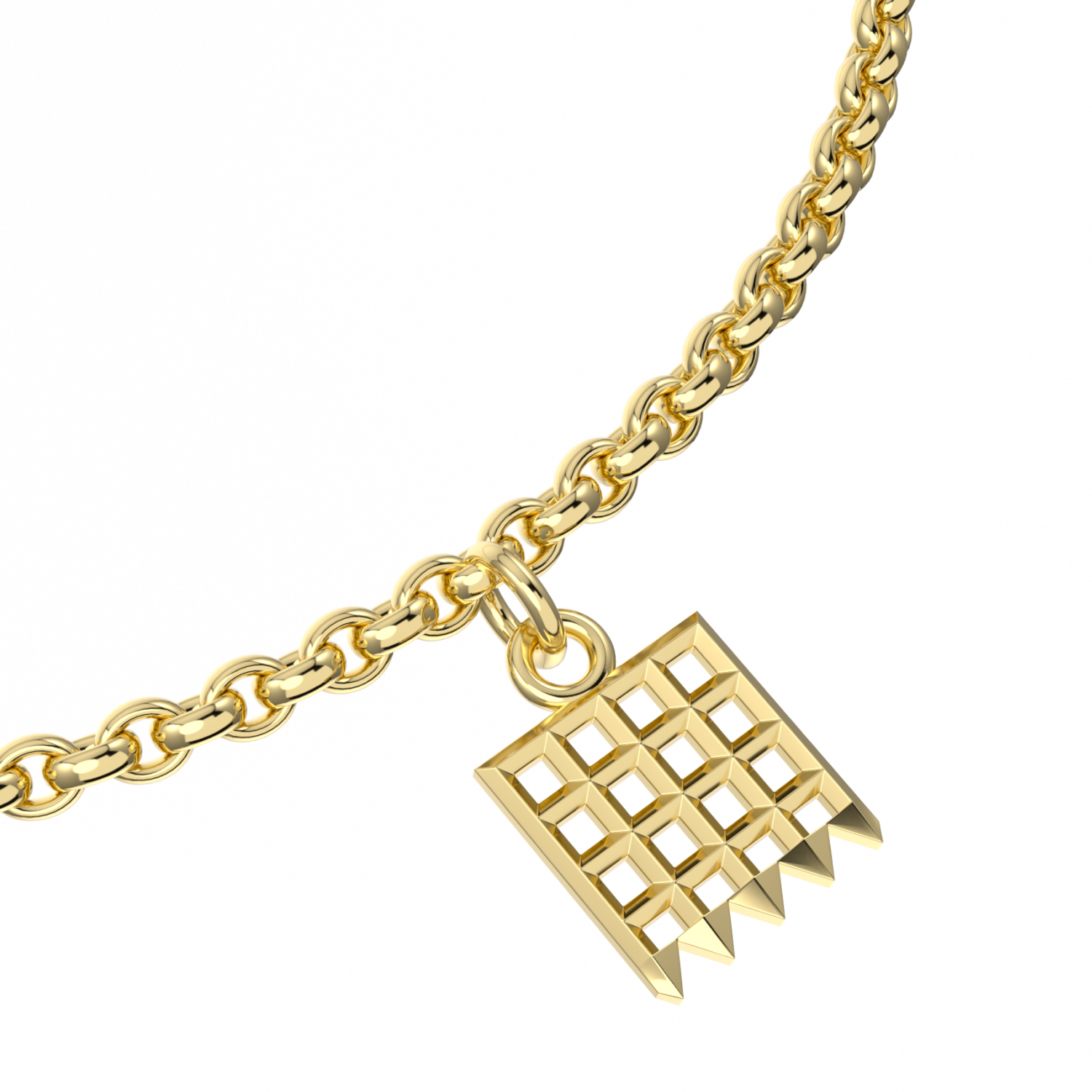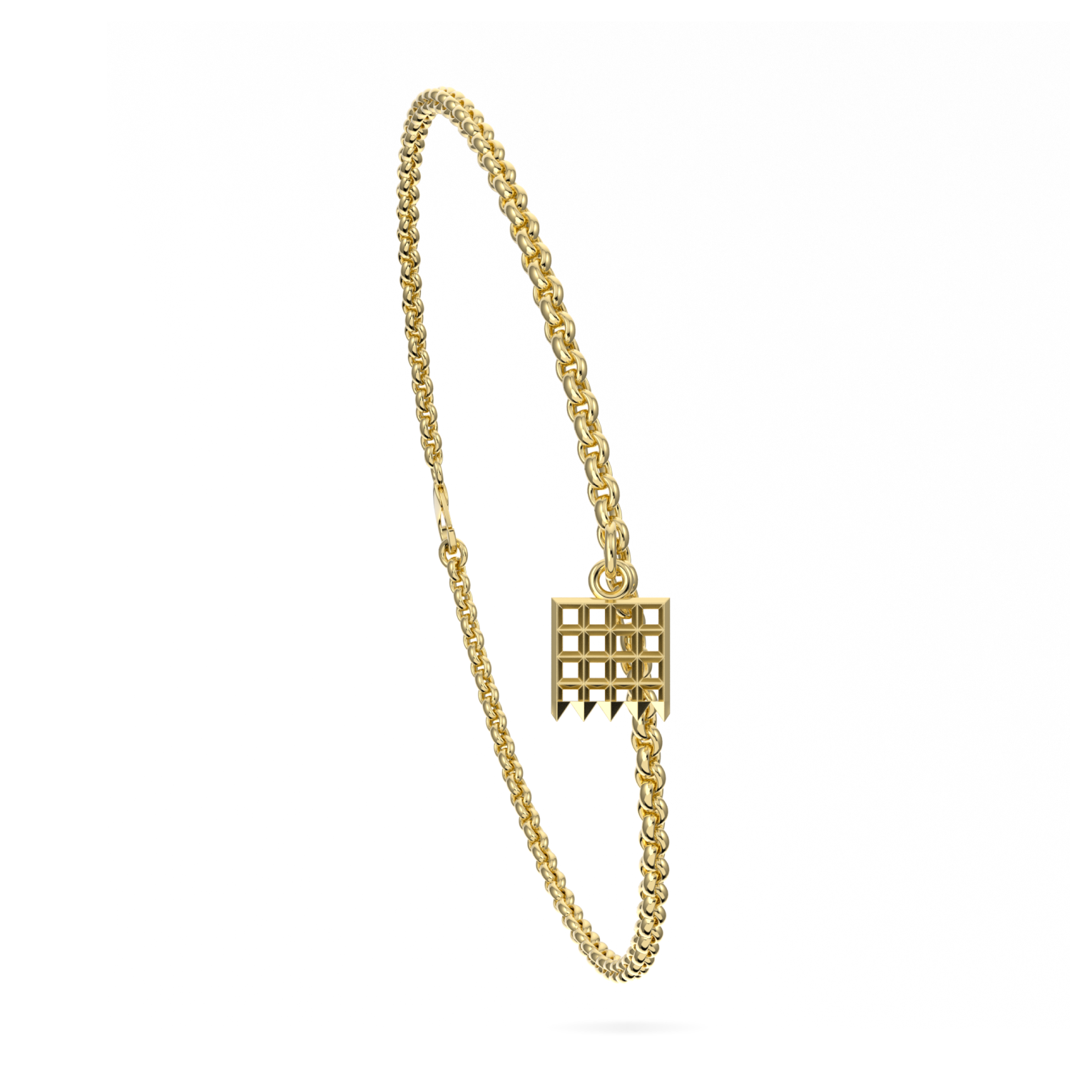 The chain charm bracelet is inspired by the struggle of female empowerment - a yellow gold chain motif has diamond milled and cut to within 0.1mm of perfection. Crafted in 18ct yellow gold. Part of the IWD22 Collaboration Capsule collection.